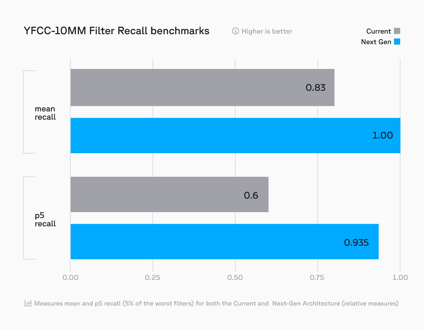 Disk-based metadata filters not only reduce memory usage and enable high cardinality filters to be applied efficiently, they also improve upon recall.