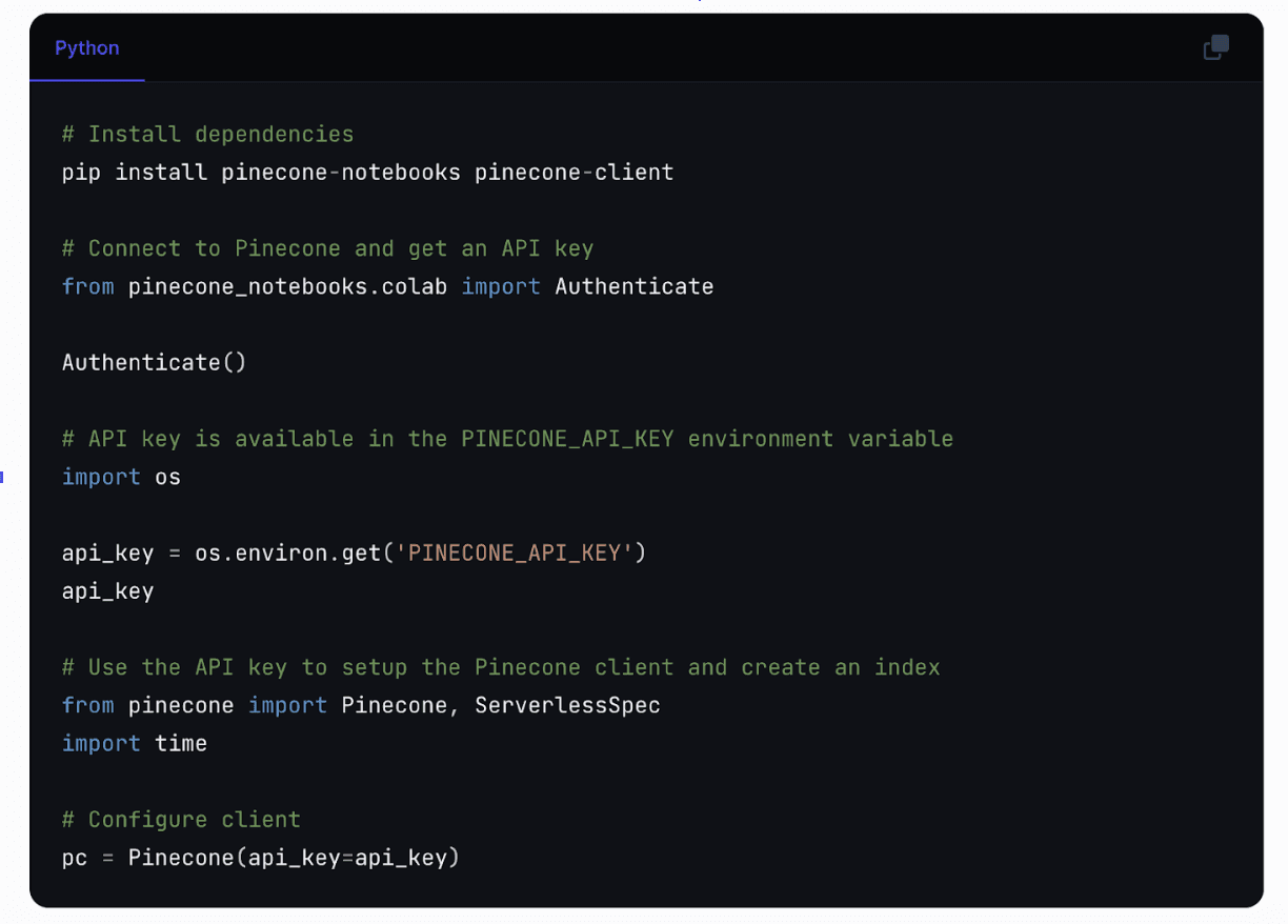 Pinecone is excited to announce the Pinecone Partner Program, designed to streamline the developer experience. This program allows for seamless integration, enabling developers to access Pinecone with just three clicks from our partners' platforms. The new integration represents a significant step toward reducing friction and increasing productivity for developers building knowledgeable AI applications.