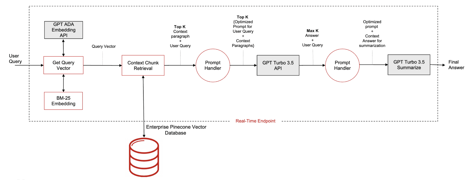 Bansal and his team first experimented with JSON storage and cosine similarity-based search solutions. During early evaluations, however, they encountered significant performance limitations: 1) The solution was slow in both search and generation, 2) managing growing data sets became increasingly inefficient, and 3) search results were often not contextually relevant.