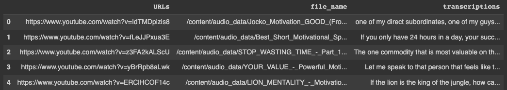 transcription_df["transcriptions"] = transcription_df["file_name"].apply(lambda f_name: audio_to_text(f_name))